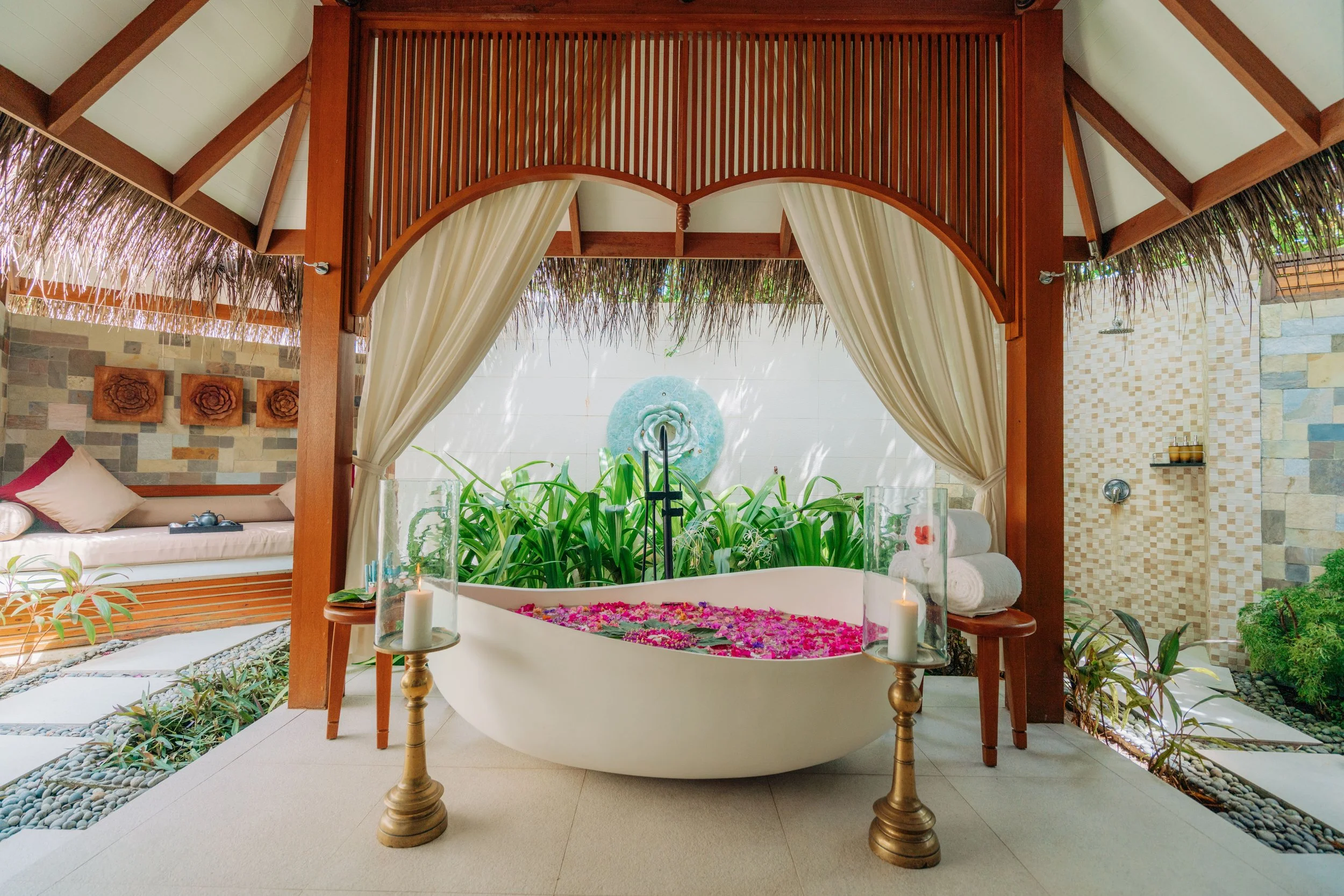 To reconnect with nature, Baros preserved the original coconut palms that tower majestically overhead. Beneath a canopy of green lies the Botanical Garden, showcasing the island's lush and remarkably diverse vegetation. Guests can immerse themselves in the island's beauty, exploring indigenous flora and rare inclusions. Stroll along idyllic pathways, scanning the QR codes placed alongside the plants to learn about their medicinal properties and cultural significance, or join a guided island walk led by Baros's knowledgeable staff. The experience is truly immersive, allowing guests to touch and smell the various plants.