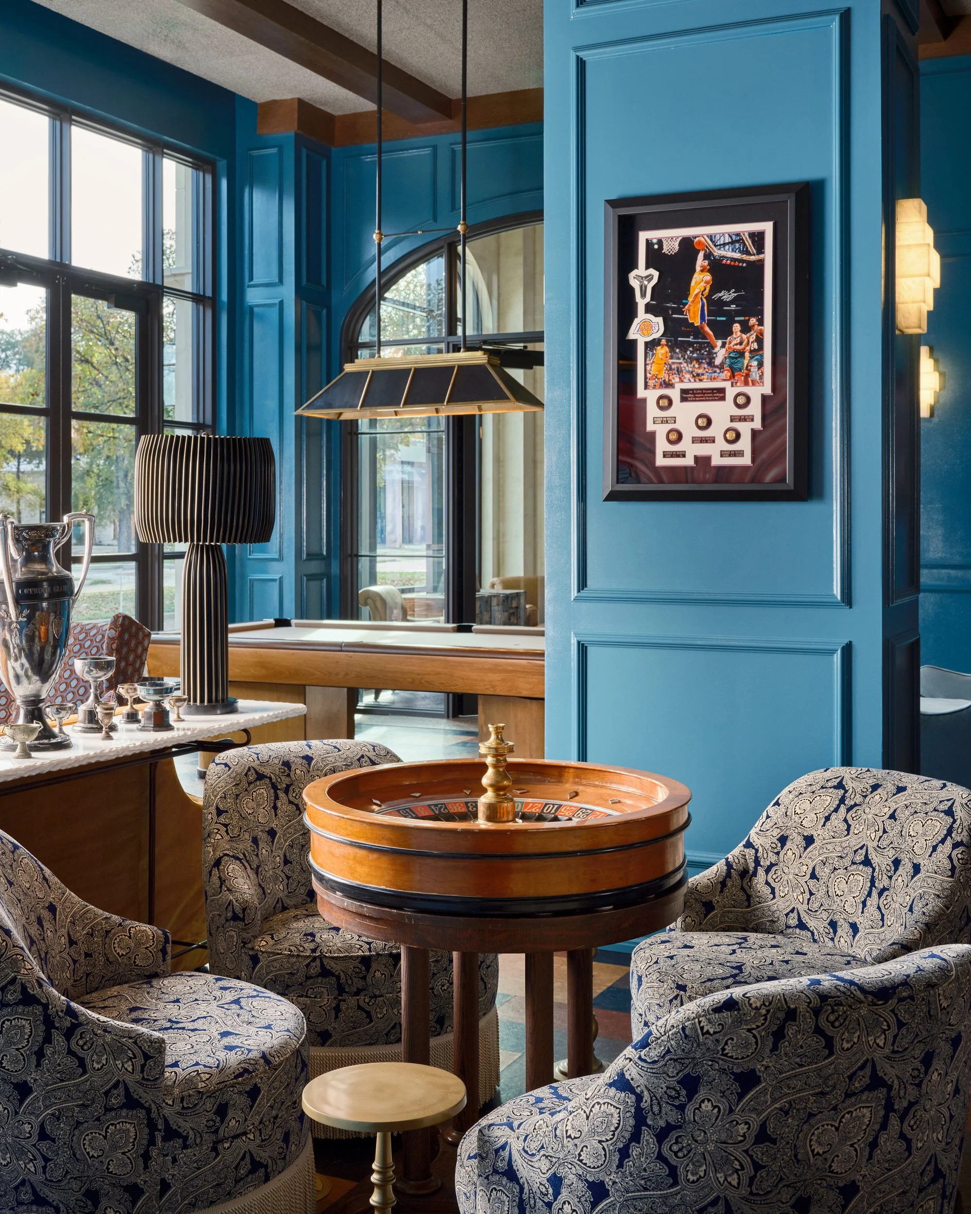 The hotel’s communal spaces are designed as much for locals as for visitors. With shelves of books, deep seating and a relaxed atmosphere, it draws a stylish mix of visitors and Fort Worth regulars who come for cocktails, conversation and an easy start or end to the evening.